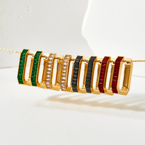 Impermeabile Anti allergia delicato 14K placcato oro colorato zircone cubico ciondola orecchini a cerchio in acciaio inossidabile Huggies da donna