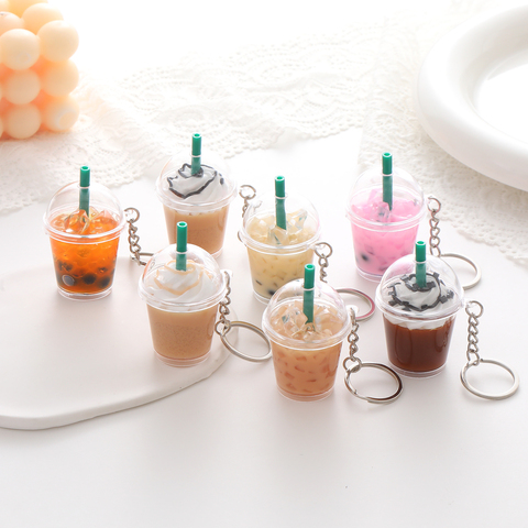 Cadeau Étudiant Enfants PVC Solide Mignon Sac Pendentif Alimentaire Simulé Glacée au Café Au Lait Boba Thé Tasse Porte-clés Pour Les Femmes